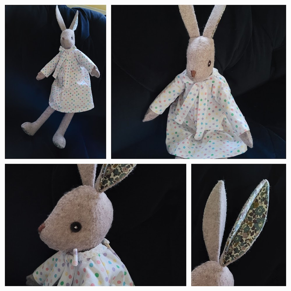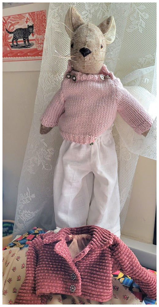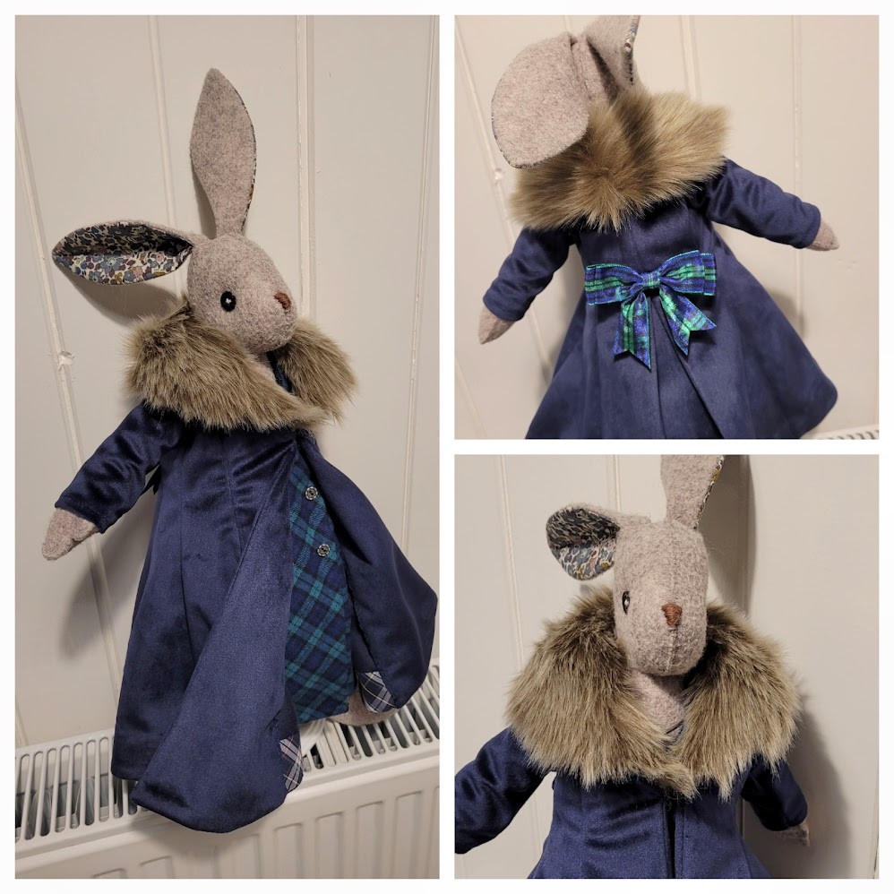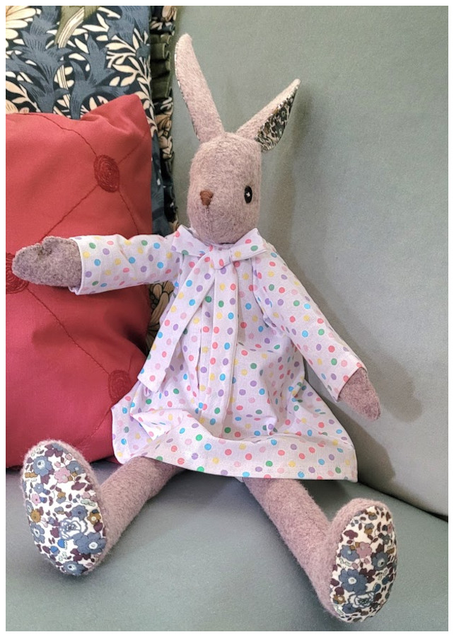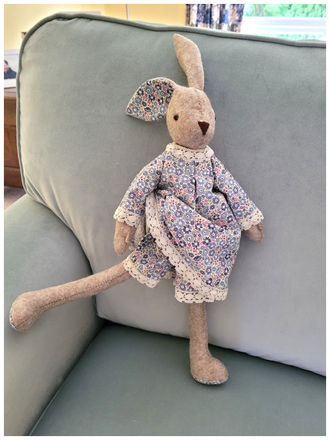 Luna II made a surprise appearance in June 2024. Her ears, foot pads and outfit are a lovely Tilda fabric which has been lurking in the stash for quite some while. Luna II was specially made for eldest gorgeous granddaughter Olivia who lives in London...