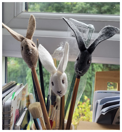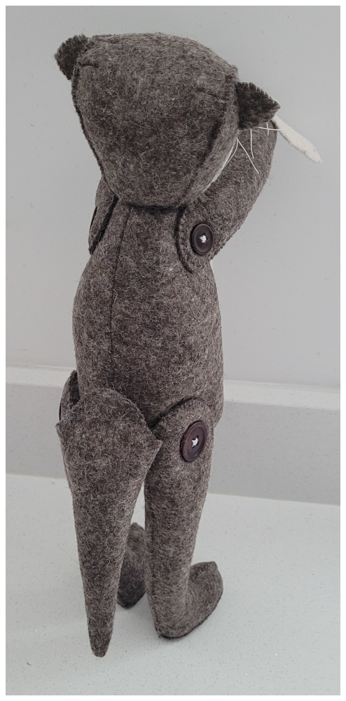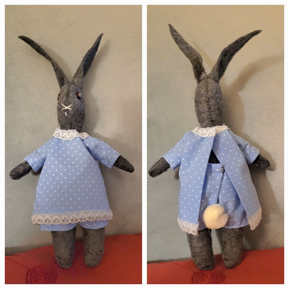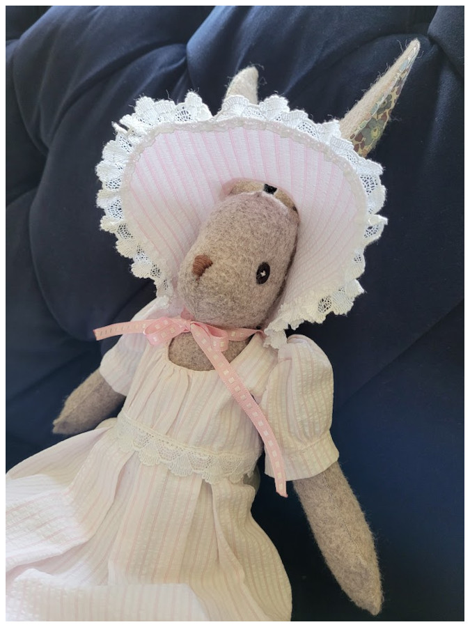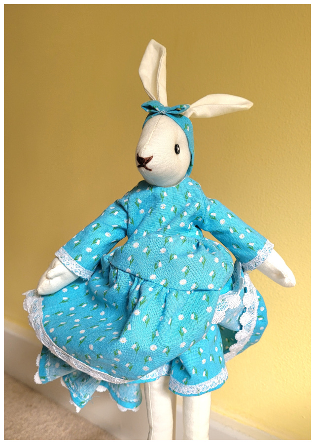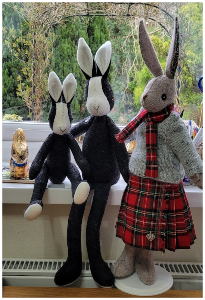 Luna II made a surprise appearance in June 2024. Her ears, foot pads and outfit are a lovely Tilda fabric which has been lurking in the stash for quite some while. Luna II was specially made for eldest gorgeous granddaughter Olivia who lives in London...