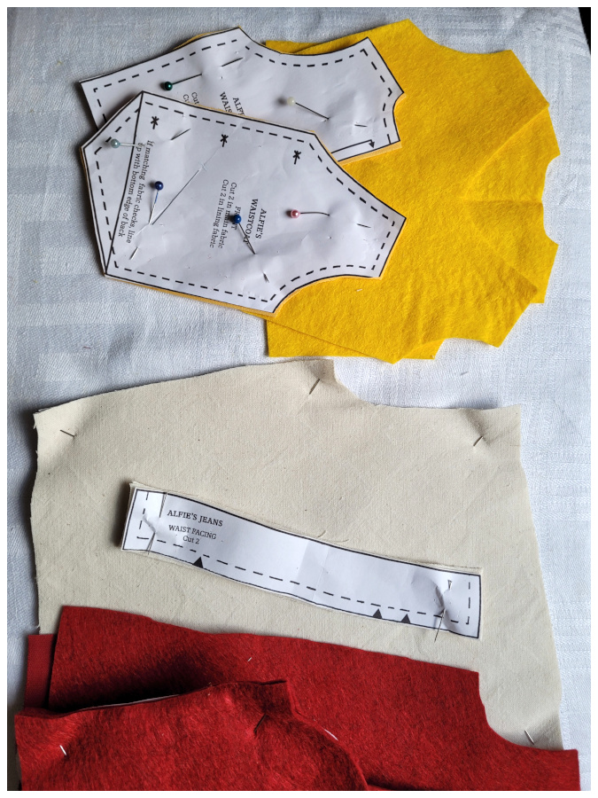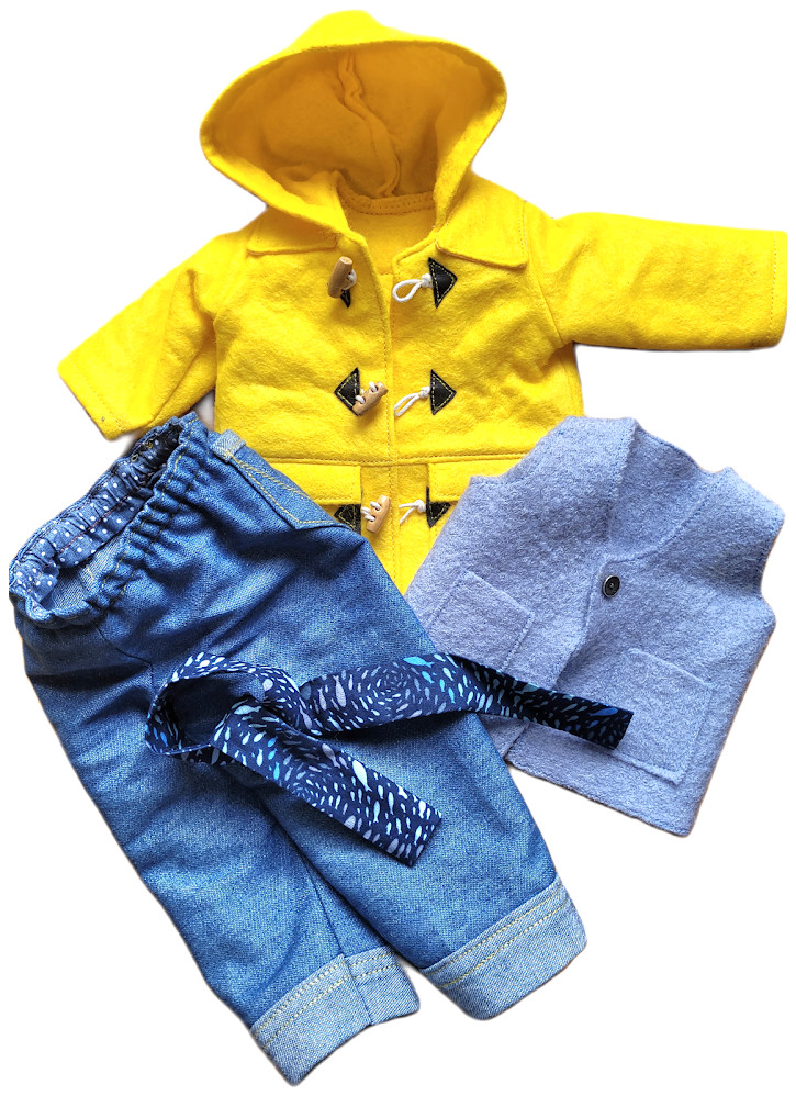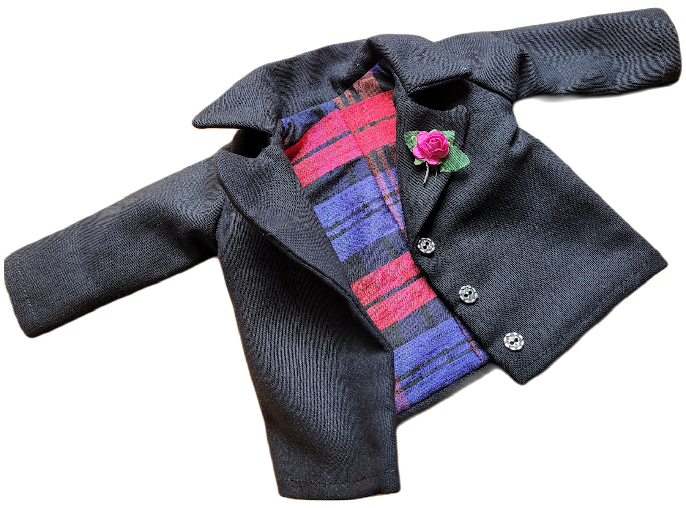 Alfie's Regency Outfit comprises: Breeches, Boots, Shirt, Waistcoat, Cravat and Tailcoat. There was a lot of tricky stitching for this outfit, and most items needed special adjustment to get a better fit for Alfie. I even forced myself to pour a glass of wine then watch 'Death Comes to Pemberly' again - just to get an idea of now the costumes should look, and not because I am an Austen addict... I am really pleased with the finished outfit, and a little bit in love with Alfie. The boots were really difficult to get a good fit and took two attempts to make them look reasonable, and all those tiny buttons on the breeches and waistcoat. The original pattern suggested using French knots but I thought they were not good enough for such a lovely outfit, and I already had the tiny buttons in my stash... BUT why do chaps have buttons on the opposite sides to ladies, and WHY did I keep forgetting and have to do them again, and again..