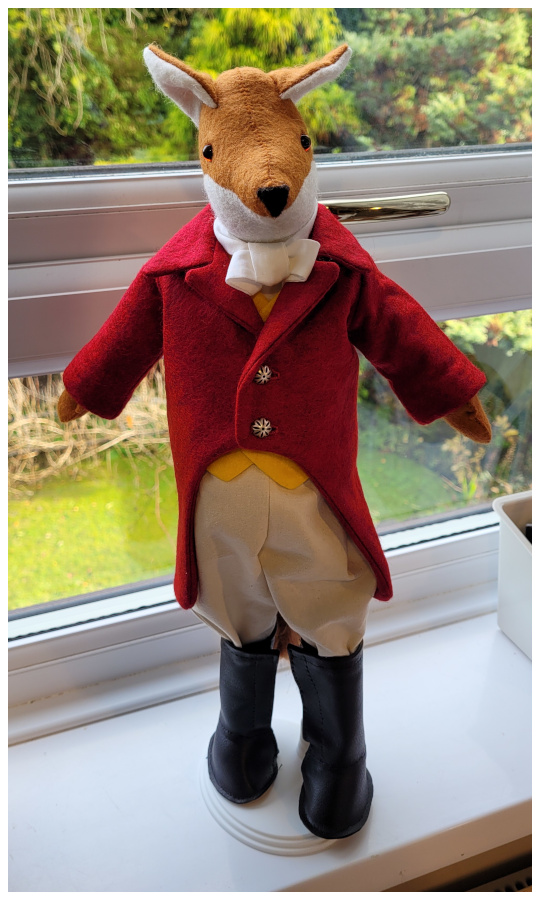 My sister-in-law was so taken with Foxy Loxy I, she commissioned me to make her a fox dressed as Master of the Hounds....