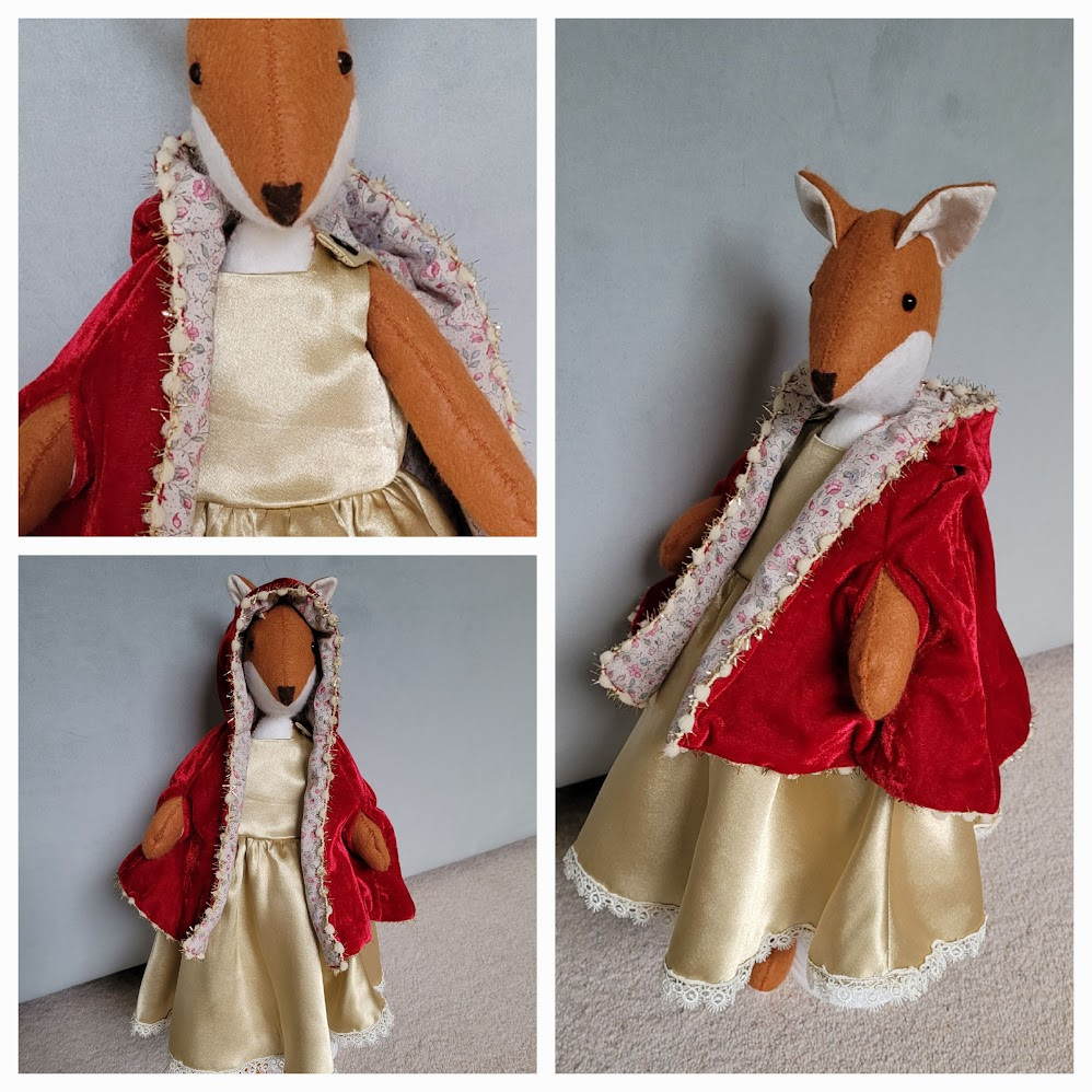 Foxy Loxy was very lucky to receive a new outfit for Christmas 2024. Here she is modelling the Twirling Dress in Gold Satin, with a fully lined Red Velvet Cape. Imogen loves her...