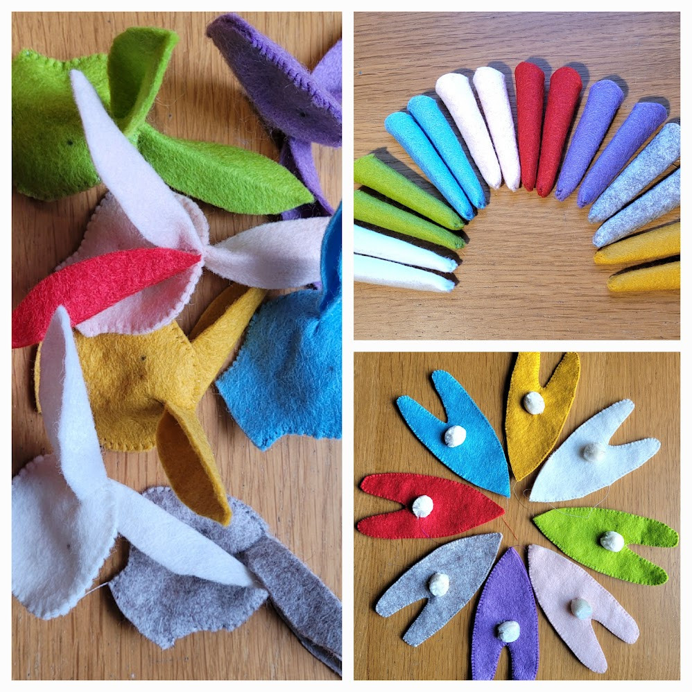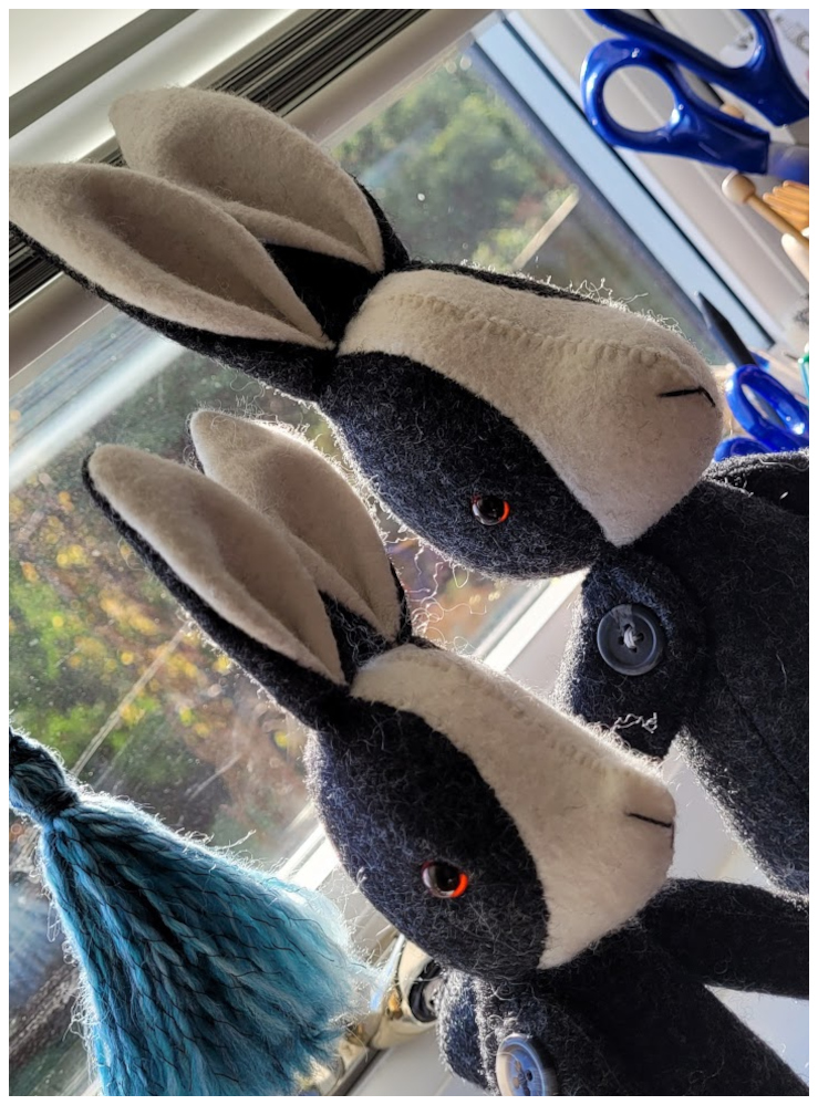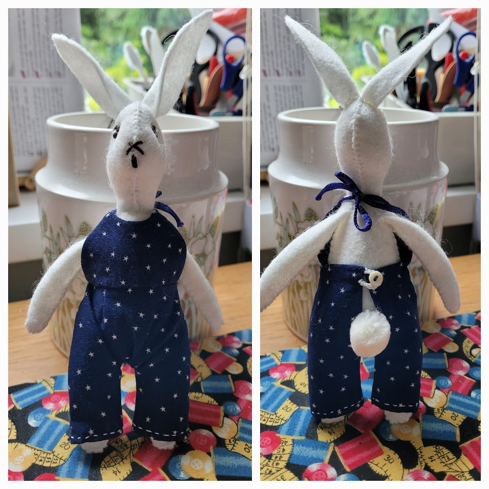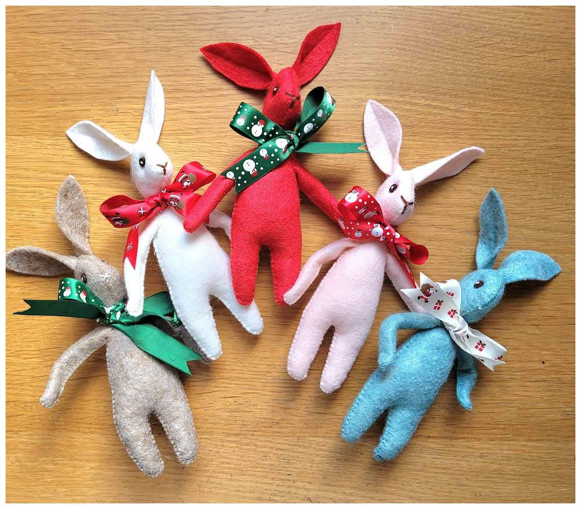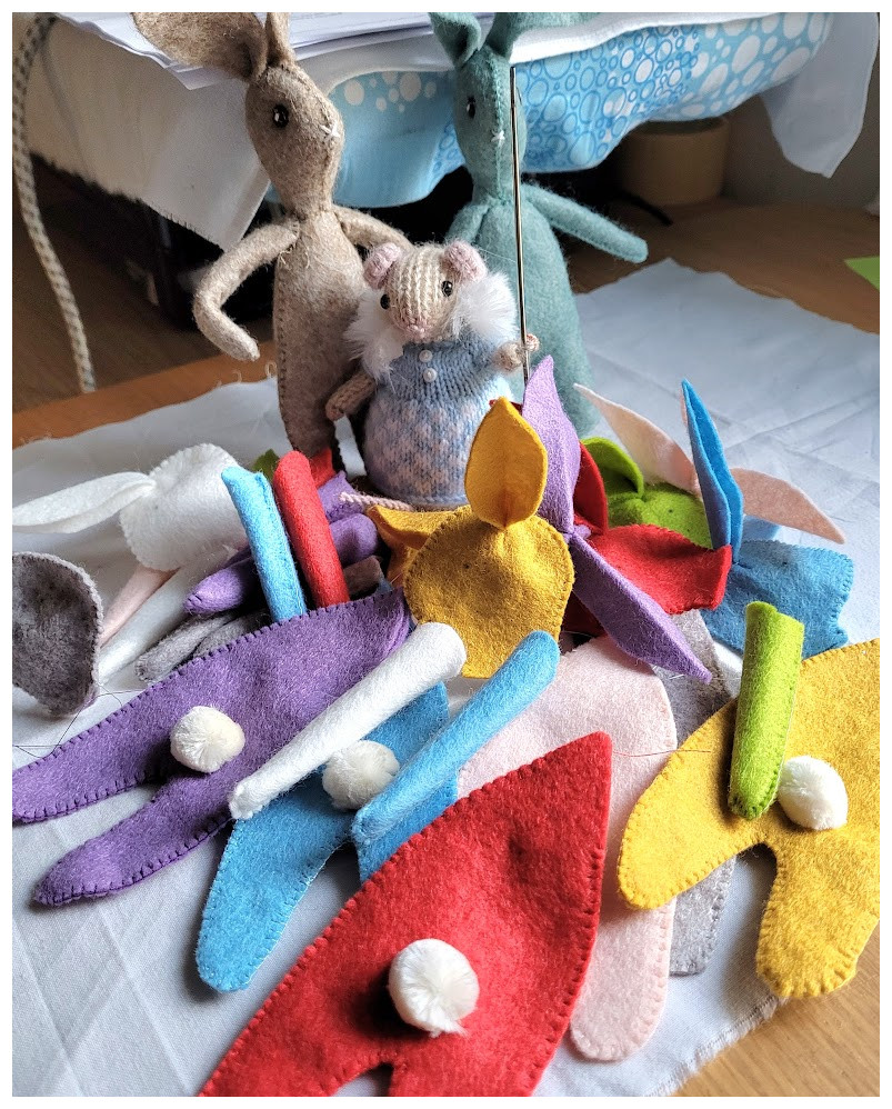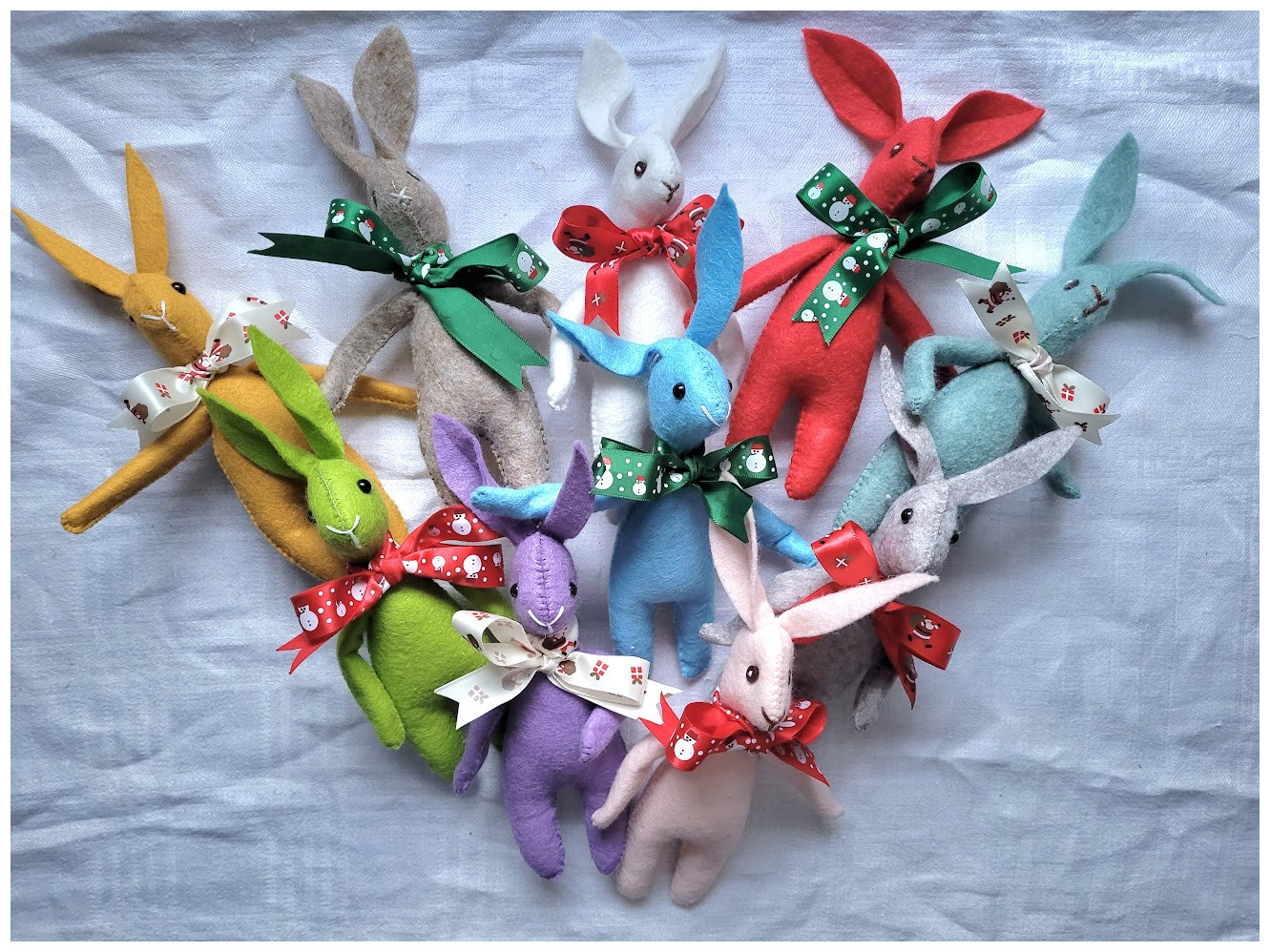 November 2024 an extra project managed to push it's way forward onto the sewing table. There are moments like this, when a very large stash cupboard comes into its own! Why it's ten baby bunnies. Two were stitched earlier last year, so eight more needed in time for Sssshhhh you know what but with only a week to go before the end of the month the only way to do this was be methodical. Cut them all out, stitch all the bob-tails on, get those ears in place, then stitch all the heads, then all the arms, all the bodies, ready for stuffing and final construction.