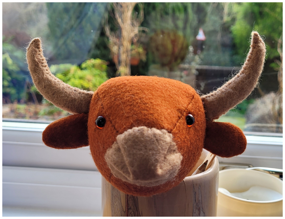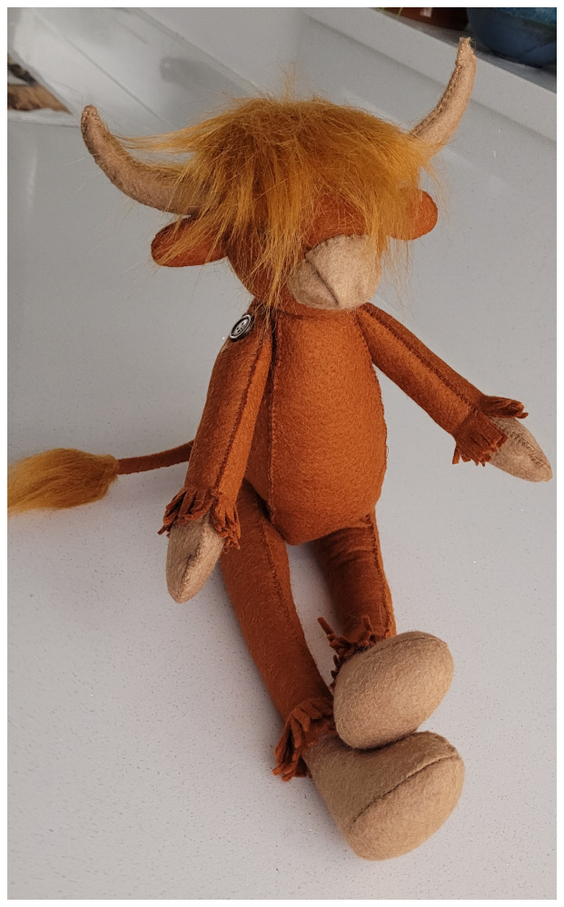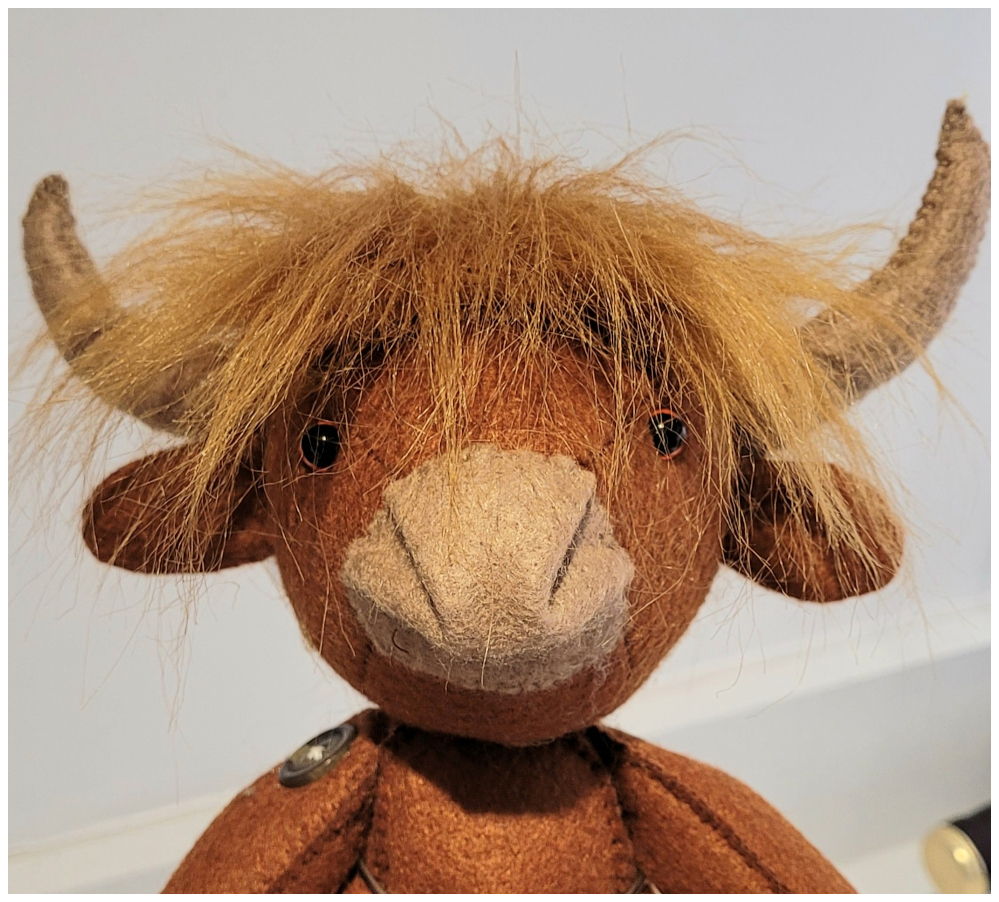 At last Hamish has made it out of the cupboard. With Burn's Night 2026 coming up it seemed too good an opportunity to miss. I thought his head was going to be tricky but compared with the hound, it was straight forward. I deviated slightly from the original instructions in Book Four when inserting the head gusset. I stitched both sides of the front gusset first, before the back section, so I could attach safety eyes while the front of the face was still flat. I decided that I would stitch all the head by hand using backstitch. This worked well for me as I could manipulate the gusset round the muzzle parts snipping carefully at the sharp corners. I'm not certain that I stitched the muzzle on pefectly, but my rendition does give him a cheeky little grin, and I absolutely love his mop of ginger fur and tufted tail piece!.