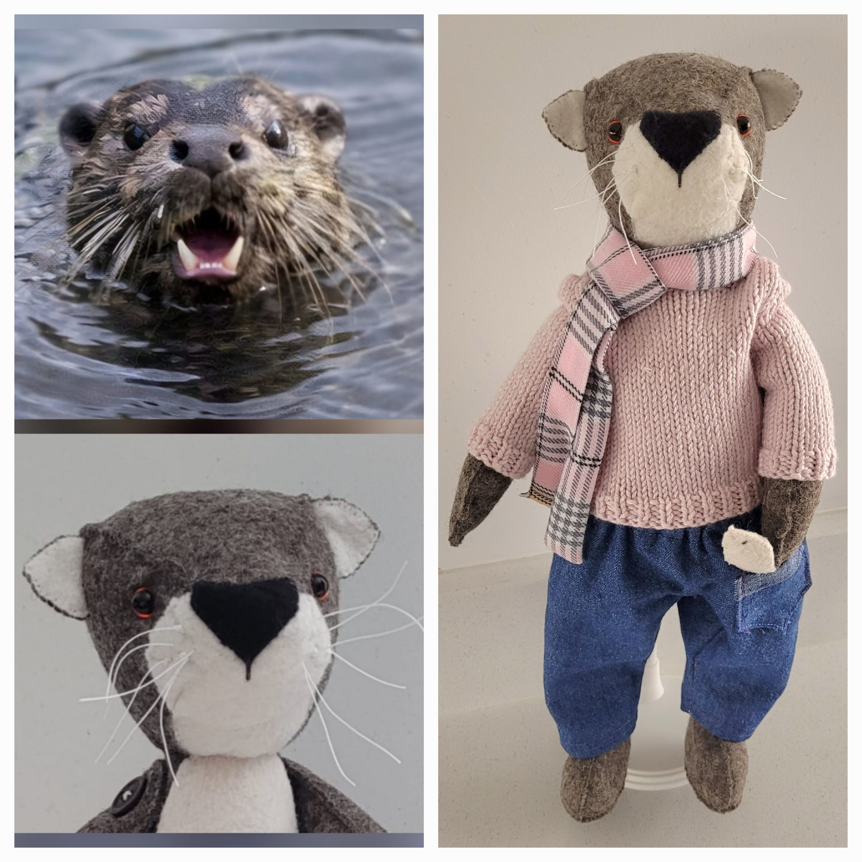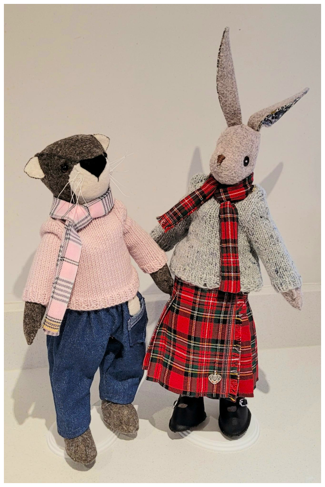 We have a family of otters on our local river. My husband is obsessed with spotting them and photographing them. Would I make the Otter for him? Ottoline wasn't really on my list of makes for 2026, but when Mr Hubbykins made such a cute plea who could resist. A quick online purchase for a re-make kit from CoolCrafting, and two days after delivery... Here she is, January 2026. Dressed in a relaxed pair of barrel leg jeans (pattern from Ziggy's outfit), with Luna's pink jumper and scarf.