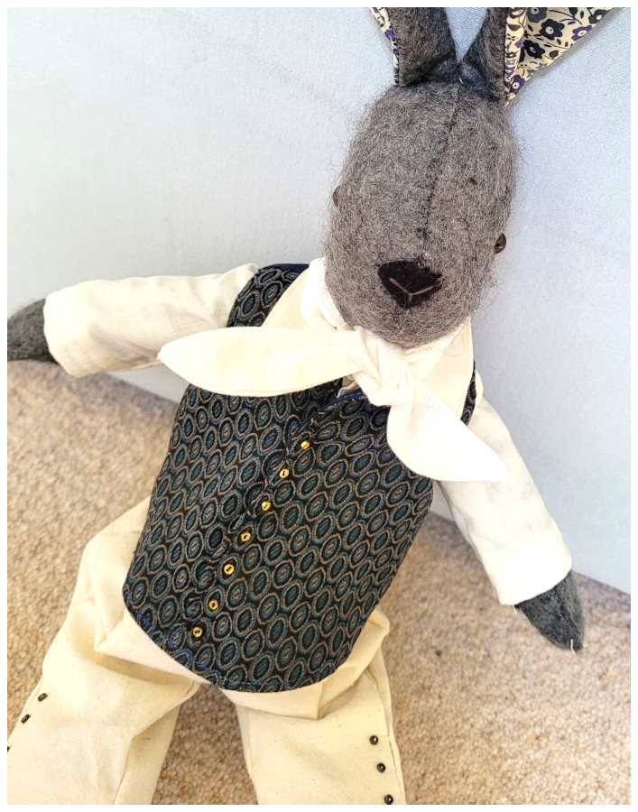 Compared with the hound, the Moon Hare was a doddle to make, apart from trying to sew the arms in the right place. Eventually I gave up and used buttons to attach the arms to the body as for all the other animals.