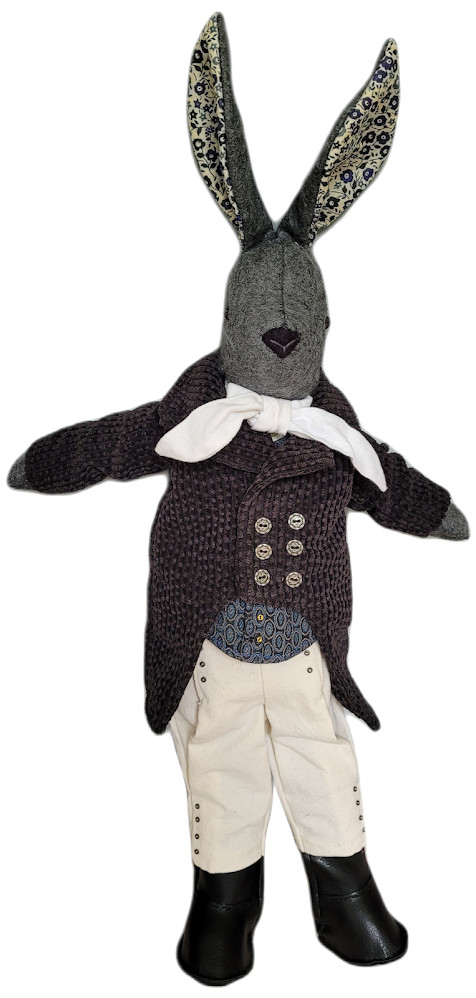 Completed March 2023, Freddie a.k.a. Humbug because of his stripes... He's not grumpy at all, it's just all those early mornings required of a gentleman farmer... When properly dressed he is very dapper in his gorgeous waistcoat and trews. Luna was so pleased when Freddie arrived so she didn't have to play gooseberry to Erik and Clemmie...