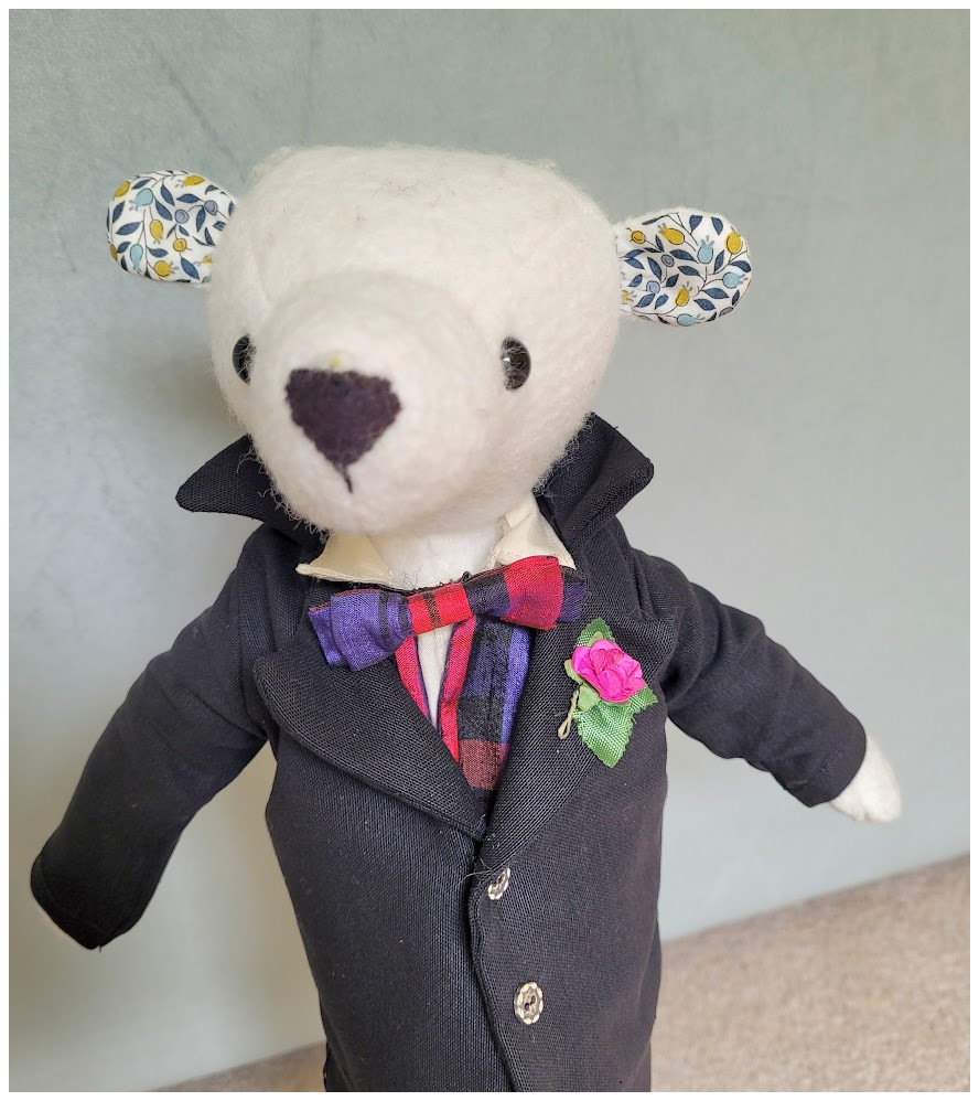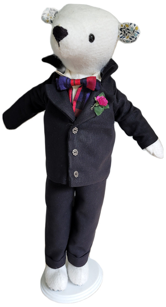 Completed January 2023. A very special bear, with a definite style of his own. The beloved husband of Clementine Cat.