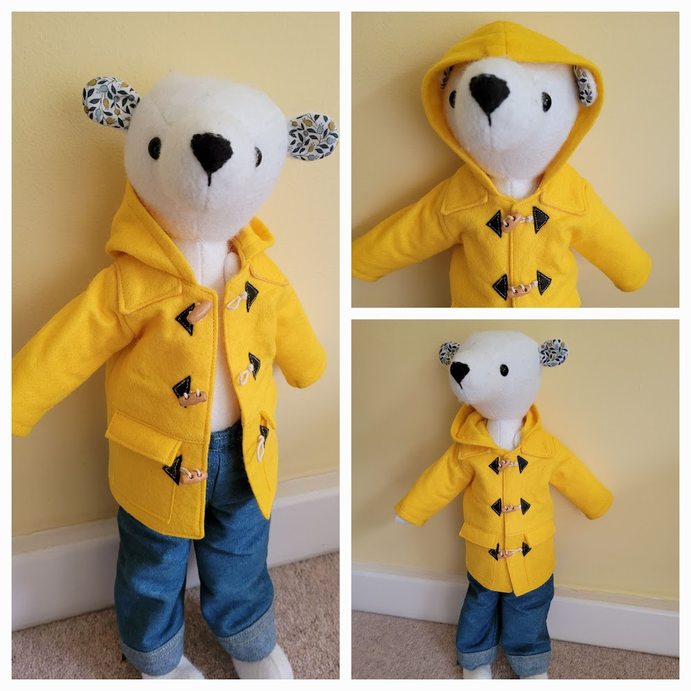 The pink wellies were a struggle to get on Delores - I need to make the ankle a bit wider in future. The Peacoat is quite similar to the Jackets made for other animals, so I managed the collar and lining attachment quite well this time.
