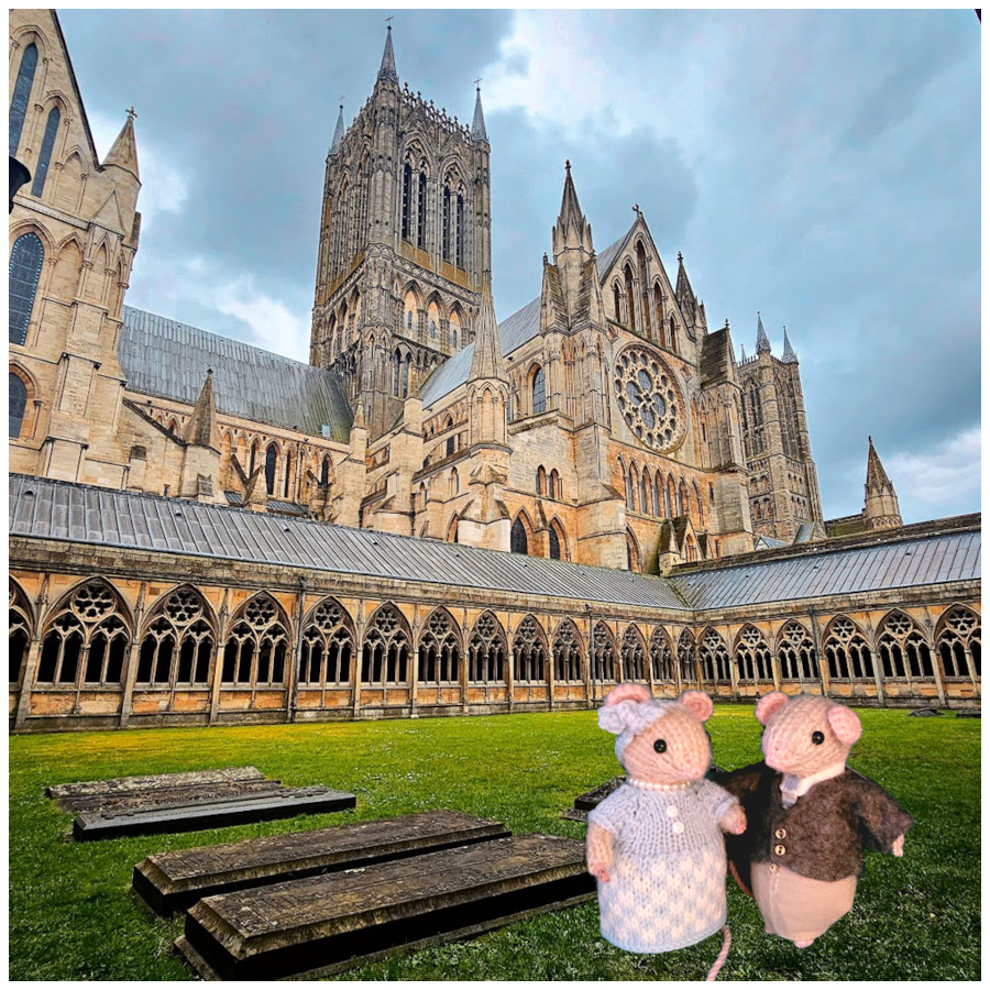 Lizzie and Julius in France 2022 : Hoodad had missed travelling to exciting places for his holidays. He was bored sitting at home. He wanted to start being adventurous again! Hoodad booked a cruise on the River Seine, just what Hoomum needed even though she was still quite poorly with Long Covid. Now that the twins are reunited with their mummy and daddy, Hoodad said it would be alright for Lizzie and Julius to come along too. Our couple quickly packed their bags. Lizzie was so excited with the prospect of seeing Paris, Giverny, the Bayeux tapestry and so many other wonderful sights. Every day was an exciting excursion, every evening was feasting in style (so many wonderful cheeses and wine), then relaxing watching the scenery float by, or were we floating past the scenery. Who knows it was all just so wonderful... Sadly we all caught Covid on the way home and then spent the next two weeks feeling verrrrry unwell.... Thank goodness Philly and Peter were on hand to make sure we were all OK. More adventures at a Jubilicious London weekend...: The whole family travelled to London for a special little hoomin's 6th birthday, but it also happened to be Queen Elizabeth's Platinum Jubilee weekend celebrations... A full set of special clothes for all the family arrived - Don't they look spiffing in their jubilicious outfits at their party before they left home. The letter boxes also seem to be having a party. All the luggage and everyone was packed into the car as they set off on their latest adventure. The Mouse Family obviously have verrrrry good connections with a certain family so they had a specially grand day out in London before joining in with hoomum's family celebrations. Lizzie and Julius go to a wedding: Peter and Philly spent some well earned holiday time away with all the children. While Lizzie and Julius did what retired couples do... Reading quietly, going out for lunch, just generally pottering about. Lizzie has been busy in the sewing room with Hoomum. She has honed her skills as snoopervisor extrodinaire; giving hoomum the *hard stare* and wielding her perfectly pointy prodding stick to make sure hoomum got on with her stitchery projects. There a Hardanger square to be finished, much more to do on the second Methodist Tapestry Project panel, and getting in with the 100 day blackwork in colour project. After all that hard work, there was a special reward for Lizzie and Julius. Hoomum and Hoodad went travelling way down south for a family wedding. L&J were invited, and they had a wonderful time as well as a bit of sightseeing at Stonehenge.. On the way home Hoomum & Hoodad stopped for a few days sightseeing around Lincoln. They thought the Cathedral was magnificent, although the walk up the Steep Hill was verrrrrry steep. The ice cream reward made it worthwhile though.