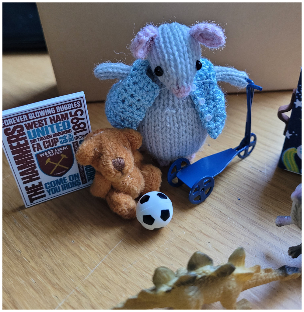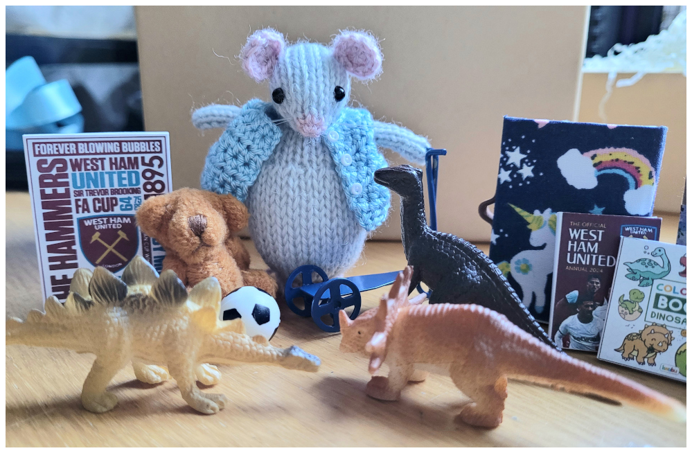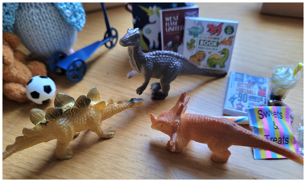 Good job the dinosaurs are house trained. "We love the scooter and football, but those dinosaurs are a bit smelly..." squeaked the mouselets.