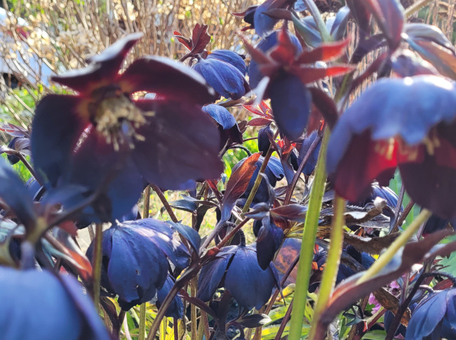 About Penny Since retirement from Academia, I have been exploring my creativity through mixed media and stitched textiles. I studied traditional hand embroidery with Tracy A Franklin (Royal School of Needlework at Durham) and, creative contemporary stitched textiles with on-line courses and workshops with Sian Martin at Distant Stitch. In my themes, I look for the fine detail to explore new ideas. My works in mixed media and stitch draw on skills of traditional hand embroidery alongside contemporary techniques. I dye my own materials using procion dyes, natural botanicials as well as rusty objects, these create colour and patterns on fabrics, threads and paper. The sometimes unexpected textural and colourful results inspire abstract interpretations in my work. I enjoy manipulating digital images of my original works to highlight and emphasise the unusual. Recently I have become fascinated by the world of Luna Lapin (designs by Sarah Peel at Cool Crafting). Making these delightful characters and sumptuous outfits keep me out of mischief and provide the subjects for telling stories to the grandchildren. I have a very long list of projects that I have started or would like to start, and dare I say finish... Occasionally I put down my needle and thread to take up scrap papers and glue to create small art works of mixed media collage. I recently developed a series of postcards based on the theme Travellers in Time. I chose four fictional characters in costume from their time period. Mary & Mathild (ladies from 1890), and Geofrey & Gregory (from 1830), make their appearance on a series of travel related collage art cards. The cards can be seen on my contemporary work page. I am an intermittent gardener with variable results. Originally there was an idea for a grand scheme for a purple and white garden with striking evergreen foliage but that idea fell on deaf ideas... However, I enjoy a bit of pottering about in our tiny patch when I have the energy to do so. Visiting grand gardens for inspiration makes for a lovely and relaxing day out. Particular favourites of mine that have done reasonably well in the garden are: Hostas, Irises, Agapanthus, Gladioli and Hellebores. I love Delphiniums and Lupins, but the slugs enjoy their early growth more so they don't seem to survive from one year to the next. Some successes to share are shown below (click on the first image to view a larger version with caption).