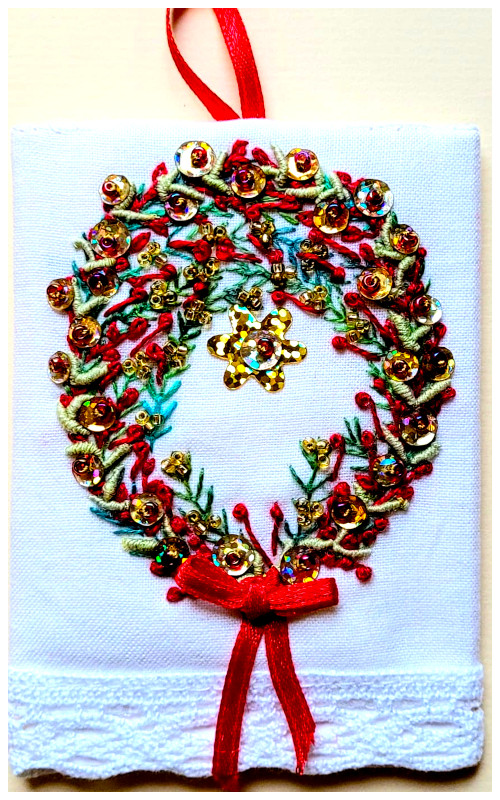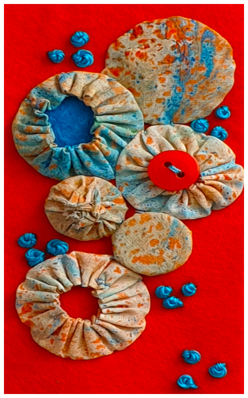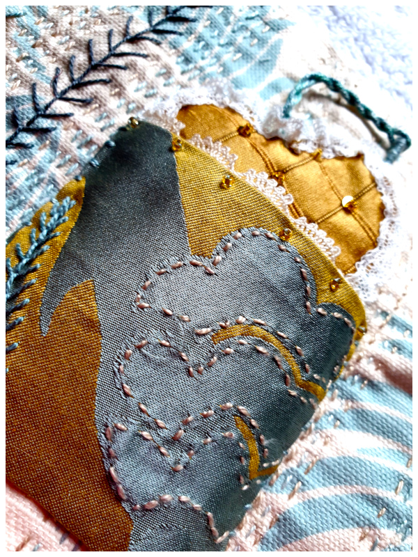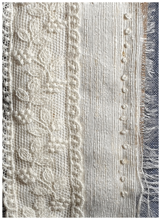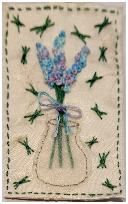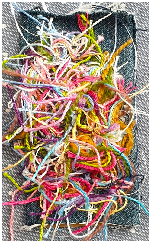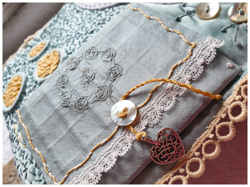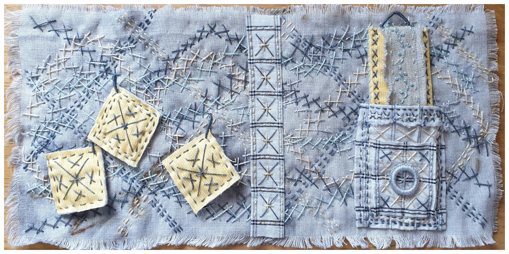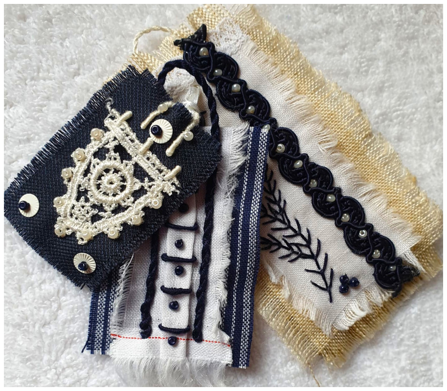 Inspired by Anne Brooke #Sew for the Soul | All images of textile work on this page are my own creations, but inspired by the YouTube videos of Anne Brooke, Textile Artist #hannemadebyanne. Please respect the copyright of creative artists and do not copy or use without attribution. Like many people I lost my creative mojo during the lockdown restrictions of the 2020 Covid pandemic. For a few months nothing creative came out of the sewing room despite having a very long list of things to do. Trying to recover from the dreaded illness I started looking around for small stitching projects that would aid my recovery only using stuff already in the house and stash cupboards. Anne Brooke came to the rescue! I met her at a Guild meeting several years ago, so was familiar with her work and sense of Yorkshire humour. Anne is very generous with her time and expertise providing tutorials free on YouTube that follow her theme of sew4thesoul. She encourages us to enjoy mindful hand stitching using techniques with found objects to create beautiful textural pieces of stitched art. These few slides show some of my favourite pieces created from the #52tags prompts. Then read on for my story of participating in #sew4thesoul. Anne's first community project of 2020 was the sew4thesoul bobbin project. Using a selected colourway to work with the piece evolves over time. Starting by pinning down fabrics add simple stitch : add lace : Suffolk Puffs : Knots : Embellishments : Paper piecing : Beads and bling : Couching : Edges : Adding words : Keep extending the piece. Mine is still growing... Covid happened and suddenly confined to our homes we needed something to keep us going, Anne ramped up the videos and we stitched and stitched and stitched. In three months her bobbin project was finished (i still hadn't started mine!). As Anne became more popular on YouTube and Instagram a happy band of stitchers start sharing works using variations of the hash tag #sew4thsoul. A new textile community begins and many IG friendships form. Ever resourceful, Anne started the sew4thesoulbook project. Using similar stitching techniques and ideas from the bobbin project, we started with 30x15cm pieces of wadding that would eventually become the pages of a very chunky hand stitched book. Lockdown paused then came back with a vengeance over the winter months. Another sew4thesoul project, 12 days of Christmas started to get us through to the end of the year. And suddenly it was 1st January 2021, and yes we were still in lockdown, but eagerly awaiting vaccinations.... Anne the magnificent had another project ready. This one will take a whole year to complete! #52tagshannemade was born. Anne was so successful at motivating me to get stitching again that I started working on some of my other projects again. This meant I didn't finish my bobbin, or the sew4thesoul book, but they are there, just waiting, occasionally peaking out of the box tempting me to go back... I have managed to keep up with the tags (sometimes a few weeks late!!). Mostly the weekly prompt brought a whoop of delight with a favourite stitch or technique, others caused a bit of groan if the prompt took me out of my comfort zone (e.g. use red!). Sometimes I was inspired to create a really interesting tag, but with others I struggled to get the creative juices going... Started in 202, but put away for a very long time due to ill health. Then 'found' in 2024 to continue working on it and Finish it! Lots of gorgeous texture and stitches, but all in white, rather than colours as Anne originally used. I think I managed to use all the prompts Starting by pinning down fabrics add simple stitch : add lace : Suffolk Puffs : Knots : Embellishments : Paper piecing : Beads and bling : Couching : Edges : Adding words : Keep extending the piece. My roll is approximately 80cm long.