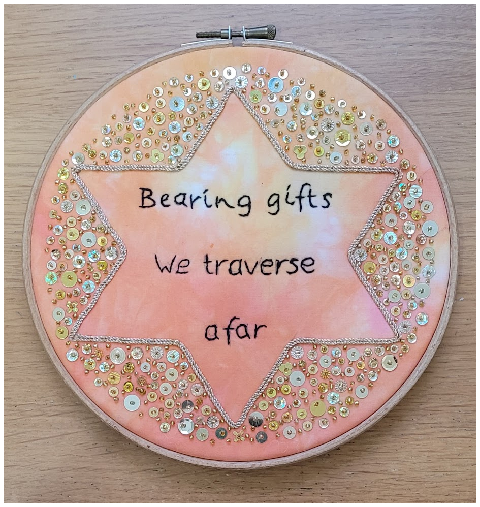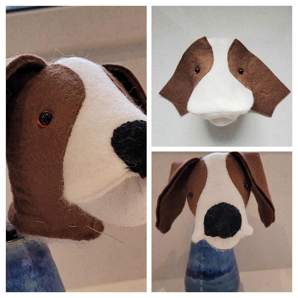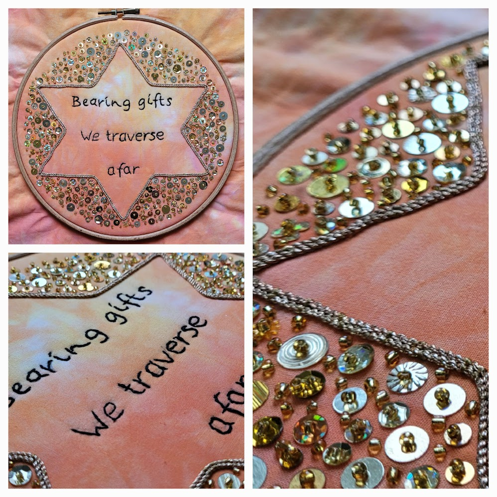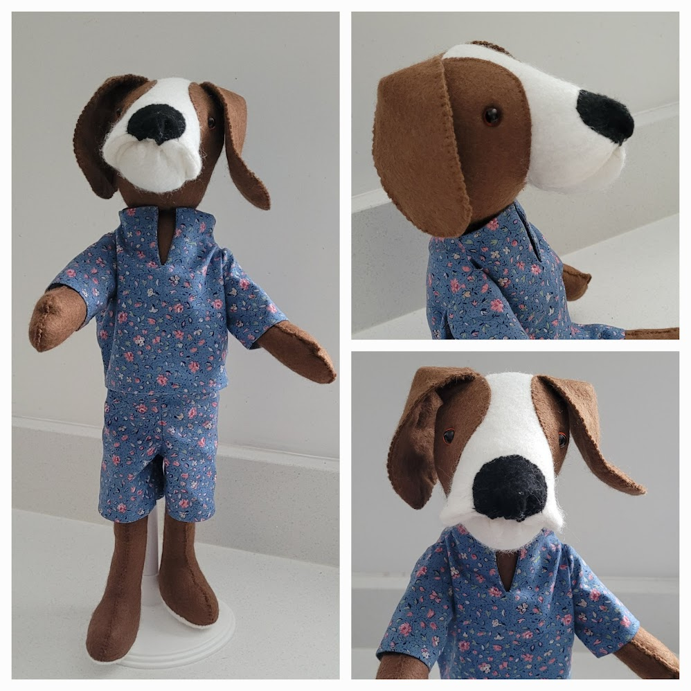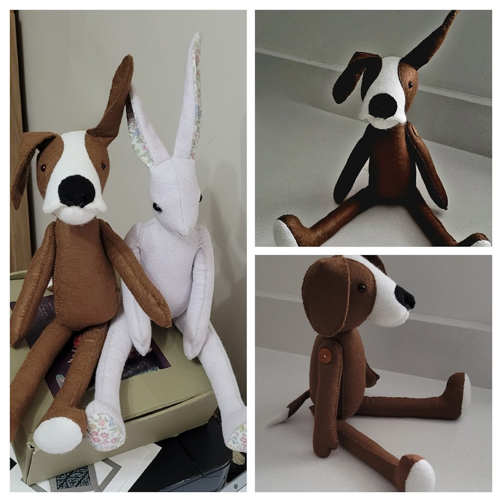 We had a wonderful time with the grandgirlies over half-term. Mending existing animals of various sorts... exciting days out in London. Seeing someone very special fall in love in Uma - I don't post pictures of the grandgirles, but trust me she was absolutely delighted, and even shared one of her baby elephants with Uma. I took the second hoop (for the Ushaw House display) with me and number one grandgirlie helped stitch the sequins around the star. So that is finished, with one Fettle Those Finishes points please. I looked at The List for 2025, and noticed that I had added two TAS workshop projects and two Winter competition projects to be completed this year. I am saddened that these didn't happen. There was one TAS workshop organised, but it was cancelled two days before the event. Very sad there hasn't been an internal TAS competition this year. I've removed those four things from The List. So this is my last piece of work for TAS this year. I went to Knit & Stitch at Harogate on the 20th. What did I acquire... Ooops I had an accident at a couple of stalls. Two more animals have been added to the CoolCrafting list and two knitting patterns. I do like the little jumpers and a friend has offered to sit with me for a couple of sessions while I practise... Second accident was Anne Brooke's stall. I've signed up to do her 2026 #52weeks project based on circles; something nice and relaxing to keep my fingers active. Also purchased some 100% wool felt in a lovel shade of blue as the backing for my Nine Windows project. These need to be started in January so they are ready for the TAS Summer Exhibition at Ushaw House. And Yes, I did get Mr Hubbykins did a Fat Rascal from Betty's! In the mean time onto the next animal please... Was it a mistake to show the grandgirlies the CoolCrafting website? Was it a mistake to show my Luna Lapin webpage with all my makes so far? Who can resist the plea of small grandgirlie... "Might be a bit of time to create another chum" ... Her eyes became as big as saucers when she saw Hugh the Hound. "Oh Please can I have a DogDog" says she, "Of course you can my darling" says I, "But can he become a girl", "Well we'll have to think of a different name, and we'll have to think what clothes you want for her..." So could she be Bernadette Barker? Noooooo. Could she by Wendy WoofWoof? Noooooo. Shall she be Delores DogDog? Oh Yesssss please. I'm not a doggy person, so I wasn't as enthusiastic in making the hound... To be honest I was dreading the head... those jowls (Flews???) the chin.... the ears.... the neck construction... Fortunately the body and limbs were straight forward and the tail insert started to make DogDog look a bit more DogDog. Fortunately, as always the instructions in the book are incredibly detailed with helpful sketches. There's no denying this is the most difficult head I have stitched, but I got there. The little DogDog character came to life, and yes, she is very cute (but I'm still not a dog person), but I know a small person who is going to love her very much).