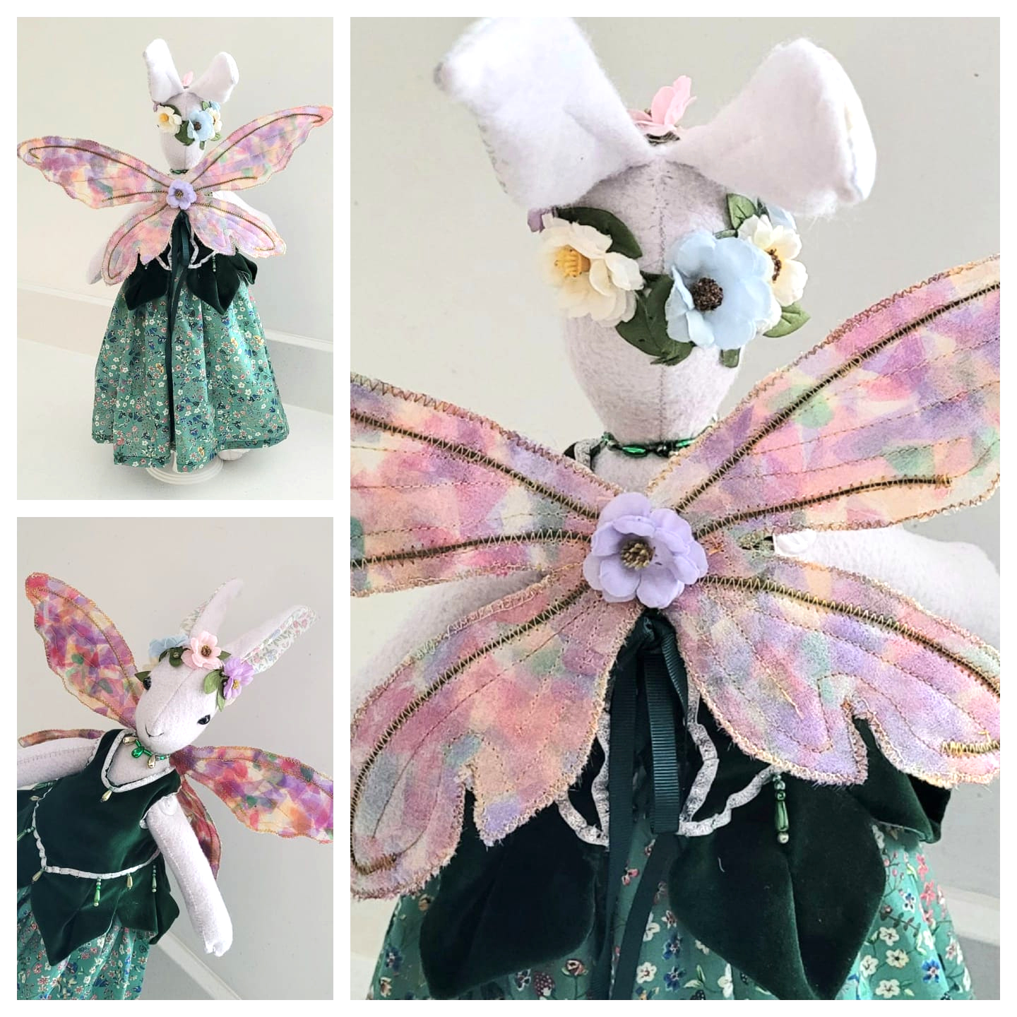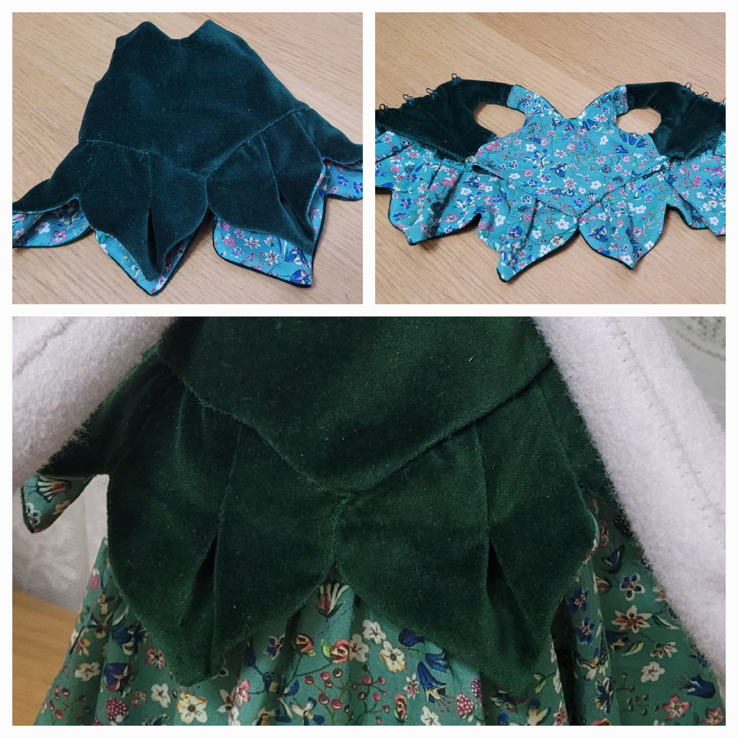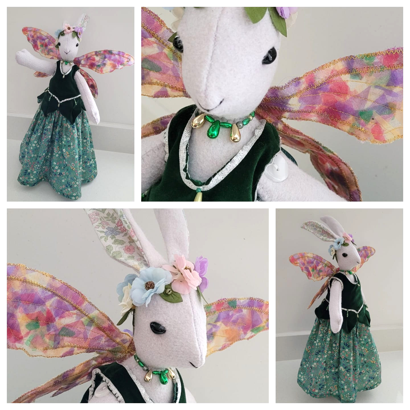 And who is this who managed to get onto the sewing table.... It's the Moon Hare, from the Shakespeare Box, she is to be dressed as Titania from A Mid-summer Night's Dream. Compared with the hound, the Moon Hare was a doddle to make, apart from trying to sew the arms in the right place. Eventually I gave up and used buttons to attach the arms to the body as for all the other animals. Well I'm glad the animal was easy, because the Elizabethan style bodice was a real s*d!!! 100% cotton velvet for the outer and back lining. You just had to look at it and the edges started fraying. I still have tiny bits of green fluff turning up... There is a peplum lined with Liberty fabric to match the skirt. Titania has a set of wings made from snippets of crystal organza edged with gold thread (they took two attempts...). To finish the outfit she has silk pantaloons, and a broderie anglaise lawn petticoat - I added the petticoat as a memory cloth. The fabric came from the German grandma's collection of bits and pieces. Unfortunately the velvet fabric was so fragile at the edges some of the seams split when turning through the shoulders and side seams. I had some sparkly braid to add to the edges to hide the problem areas. She is absolutely lovely and I'll be sorry to let her go. Phew that's another fettled finish. November has been a very busy month.