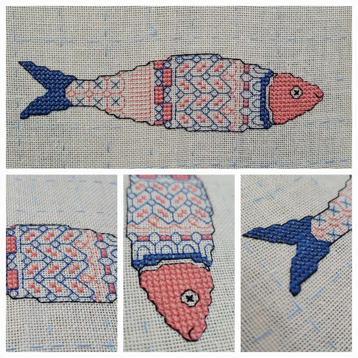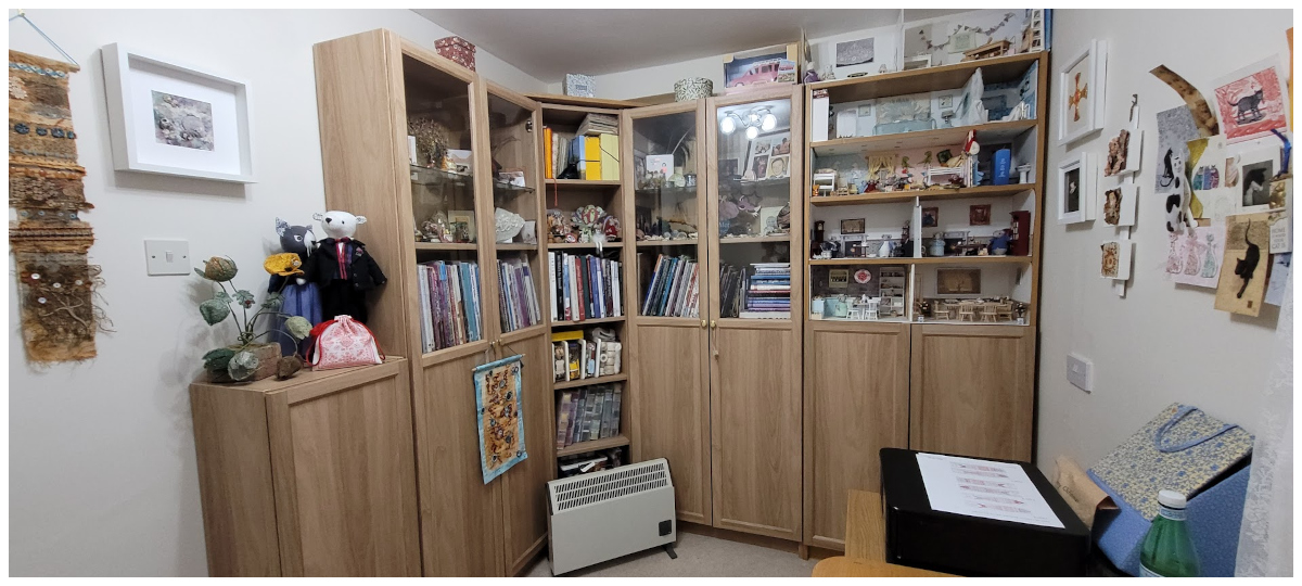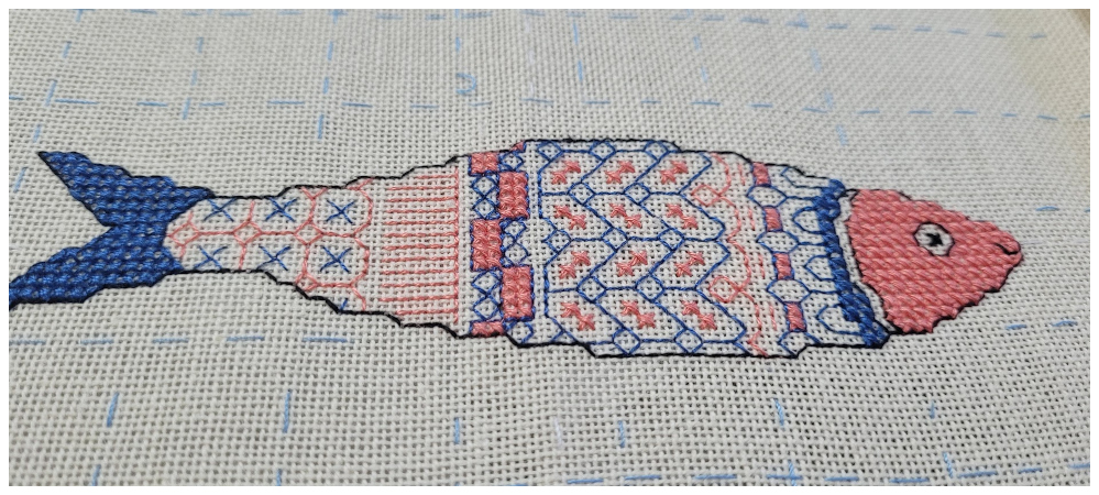My goodness I did manage to make a few (well thirty) Chrissymouse cards - they had to be a quick and simple design! Some were made from fabric, others were made from Washi Tape. But I did it, and even managed to post the ones that needed posting, and handed over those that needed doing. (Is that 10 fettling points???) Bless my lovely younger step daughter... Could you make some curtains for Finn's new bedroom please? In time for Christmas please... Not my very best make but they are done and posted, and thank you Grandpa for buying the fabric! (Please could I have TWO fettling points, one for doing them, and one for doing them so quickly...) I remembered I said I was going to try some knitting in 2025, It's been more than 40 years since I did any knitting! Can I remember how to do it?... Better get started then... I looked at the lovely patterns with cable or texture recently bought for Luna and chums... Ahhhhhh! they say intermediate level! Well that's definitely not me!. Better start with something a bit easier!. Thank you MA for offering to help, I almost called you a few times, but knitting at stupid o'clock in the morning, thought it best not to! So next call for help was YouTube to remind me how to do things. It took three attempts to get cast on and knit the first row. I still haven't got the tension right, it will need a lot more practise to get a nice even hem (do knitters call the bottom row the hem?). I didn't remember how tricky the neckline was going to be, or how to pick up edge stitches for the neck-line rib - let's not even talk about my disasterous attempt at making buttonholes... Any way I am pleased I had a go, Luna (or Freddie the Badger) has a new jumper, and eventually I might get another jumper started. One BIG Fettle Those Finishes point please. I thought that was going to be me done for 2025, then I started thinking about what I want to do next. Yes there are still many things on The List that are patiently waiting. However, life has been a bit up and down recently, sleep during the night is virtually non-existant so I need to do something easy and is quite quick to do. I found a nice little Blackwork in Colour project on the Peppermint Purple website. 'Portugese Sardines' will make a lovely little picture for the kitchen. it comprises seven patterns, each with two colour variations. When finished it will be a colourful reminder of a holiday on the Douro River we had a couple of years ago. I thought I would start it in January, but I had a day free so I found all the fabric and threads, and thought why not just do a little bit, and soon the first little fishy was done. And it cheered me up. And as a special treat to myself I had a proper tidy up in the Sewing Room and the Cupboard of Chaos to help me think about which projects I want to start in the New Year.